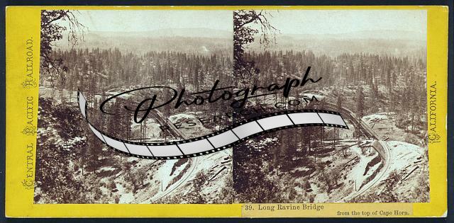 Photo of Stereograph,Long Ravine Bridge,Top of Cape Horn,California,c1865