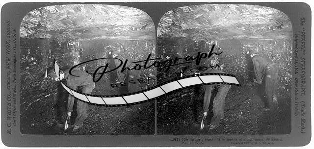 Photo of Stereograph,Boring for a Blast,Coal Mine,Pittsburgh,Pennsylvania,PA