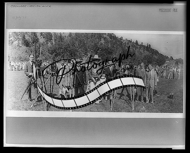 President Calvin Coolidge in cowboy outfit,photographers,mountain,field,c1927