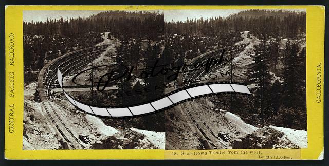 Photo of Stereograph,Secrettown Trestle,California,CA,c1865,Alfred Hart,Railroad