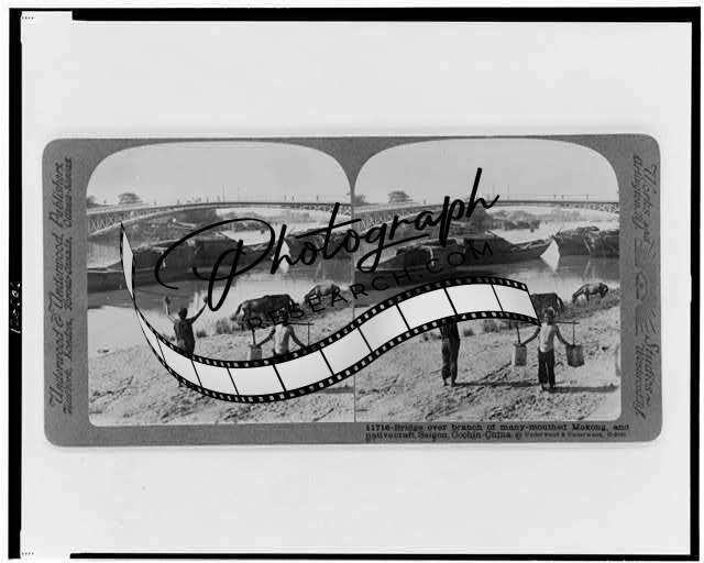 Photo of Stereograph,Bridge,Many Mouthed Mekong River,Saigon,Chochin,China,1915