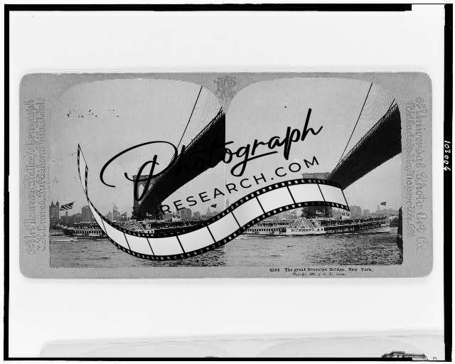 Photo of Stereograph,Great Brooklyn Bridge,New York,NY,Steamboat,c1905,Boat