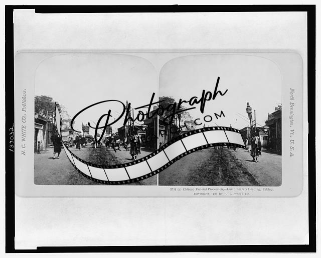 Photo of Stereograph,Chinese Funeral Procession,Lamp Bearers,Peking,China,c1901