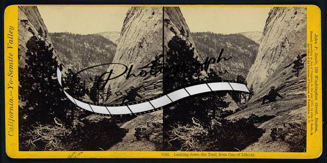 Photo of Stereograph,Looking Down Trail,Cap of Liberty,Yosemite Valley,CA,c1870