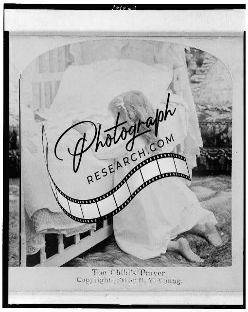 Photo of Stereograph,The Child's Prayer,Little Girl,Bed Room,c1900,Kneeling