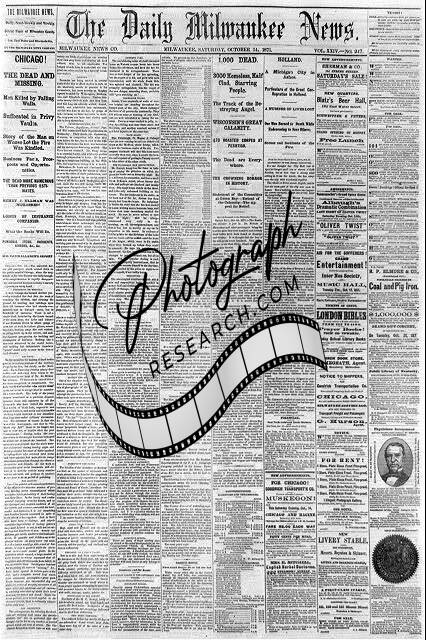 Photo of Front Page,Daily Milwaukee News,Chicago Fire,East Shore,Green Bay,1871