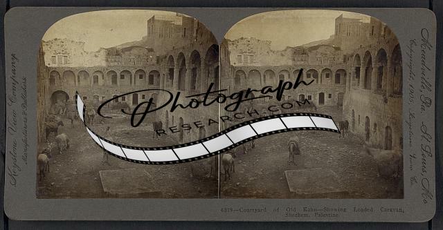 Photo of Stereograph,Courtyard of Old Kahn,Loaded Caravan,Shechem,Palestine,1905
