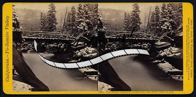 Photo of Stereograph,Foot Bridge,Nevada Fall,Snow Storm in July,California,CA