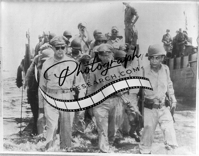 General Douglas MacArthur,Aides,Wading ashore,Leyte,Philippine Islands,1944,WWII