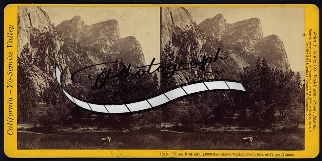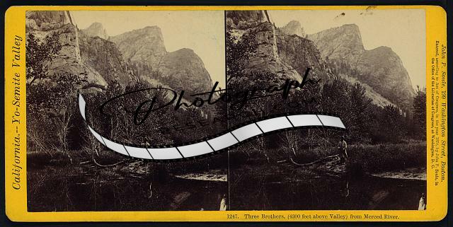 Photo of Stereograph,Three Brothers,Merced River,Yosemite Valley,California,CA