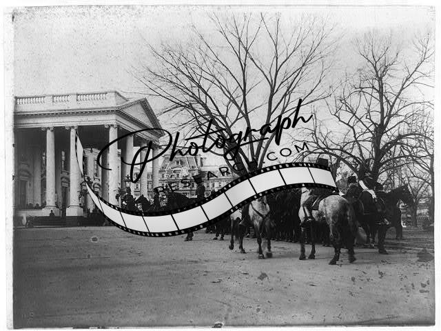 President's own,waiting,escort,cavalry,horseback,White House,Washington DC,1889
