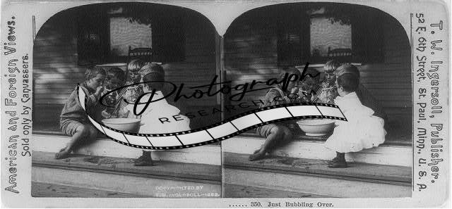 Photo of Stereograph,Just Bubbling Over,Children Blowing Bubbles,c1900