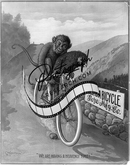 Columbia Bicycles,1895,monkey and parrot riding bicycle