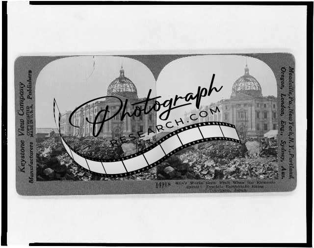 Reproduction,Desolate Earthquake Ruins,Yokohama,Japan,c1924,Rubble,Bank