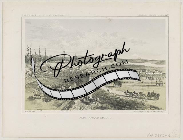 Fort Vancouver,W.T.,activites,Bird's eye view,Gustav Sohon,artist,c1855,RR