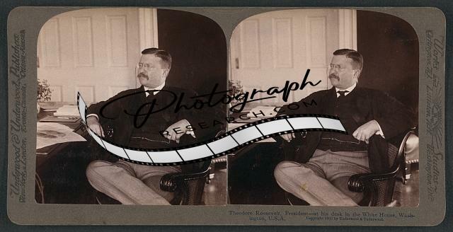 Photo of Stereograph,President Theodore Roosevelt,Desk,White House,Washington,DC 1