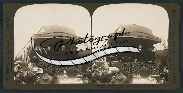 Photo of Stereograph,President Theodore Roosevelt,Ten Minute Speech,Train,c1905