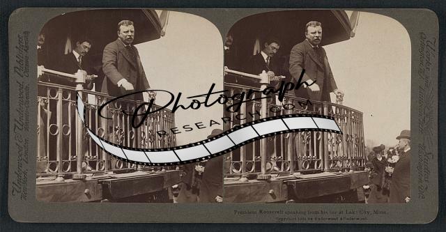 Photo of Stereograph,President Theodore Roosevelt,Train,Lake City,Minnesota,1903