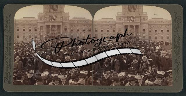 Photo of Stereograph,Helena,Montana,President Theodore Roosevelt,Crowd,Hear,1903