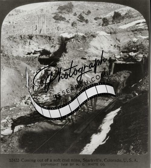 Starkville,Colorado,CO,Coming out of Soft Coal Mine,Miners,c1906,Mules,Coal Cars