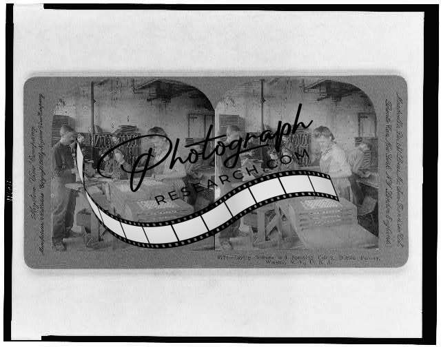 Photo of Stereograph,Laying Buttons,Spraying Colors,Button Factory,Warsaw,NY