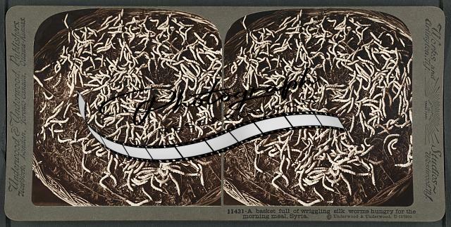 Photo of Stereograph,Photo of Basket of Wriggling Silk Worms,Syria,c1914
