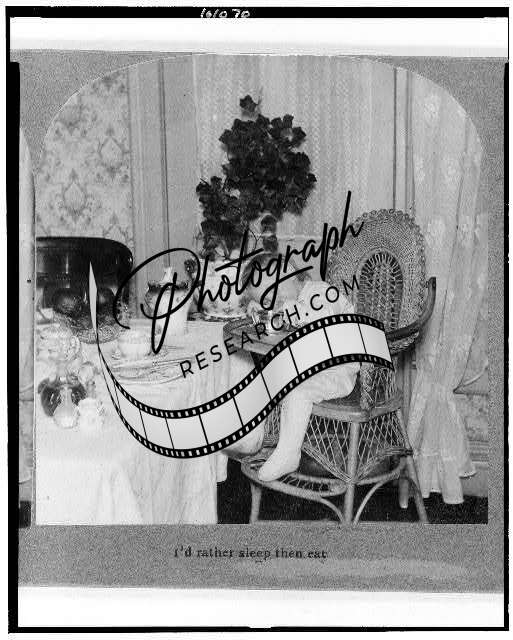 I'd rather sleep then eat,Small Child in Highchair,Children Sleeping,c1905