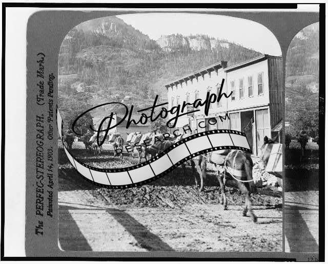Pack Train leaving Ouray,Colorado,CO,supplies for mines,Mining,c1905,Donkeys