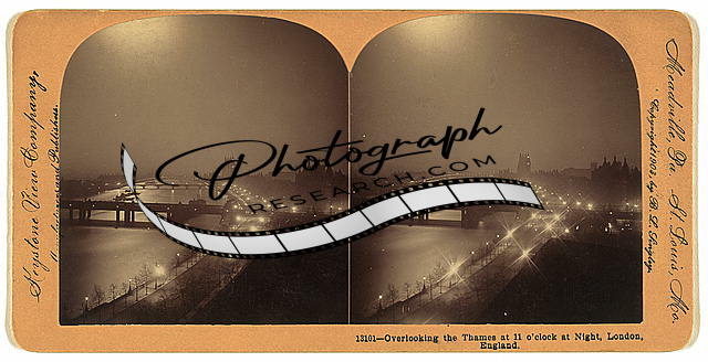 Photo of Stereograph,Overlooking Thames River,Night,London,England,Illuminated