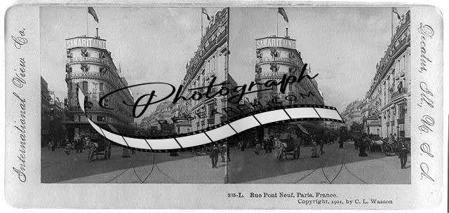 Photo of Stereograph,Rue Pont Neuf,Paris,France,c1901,Street Scene,People