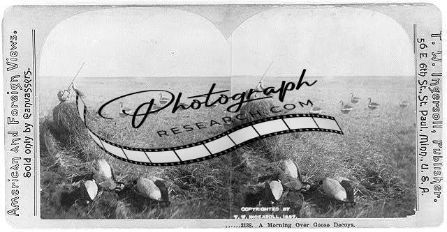 Photo of Stereograph,Morning Over Goose Decoys,c1898,Aiming Gun,Hunting