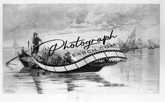 A rainy night,Venice,Italy,1880,Harbor,Rain,Gondola,Otto Henry Bacher,Photograph