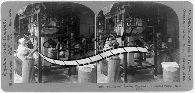 Photo of Stereograph,Filling & Sewing Bags,Granulated Sugar,New York,NY,c1916