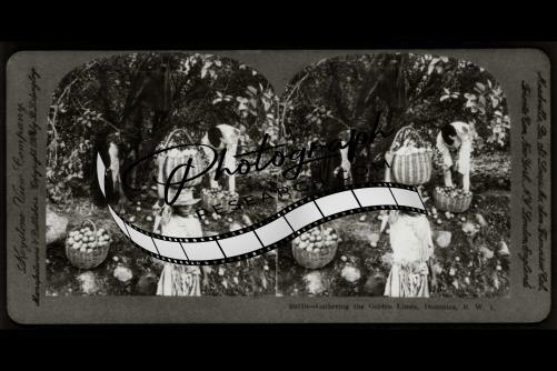 Photo of Stereograph,Gathering Golden Limes,Dominica,B.W.I.,Winward Island,1905