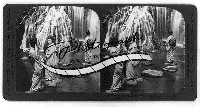 Photo of Stereograph,Stepping Stones,Lovely Tamadare Waterfall,Japan,Women,c1906