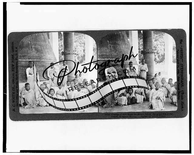 Photo of Stereograph,Poor Buddhist Monks,Great Bell,Temple,Mingoon,Burma,c1907