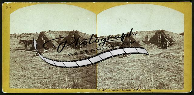 Photo of Stereograph,Graders' Cabins,Echo Canyon,Landscape,Wheelbarrow,c1868