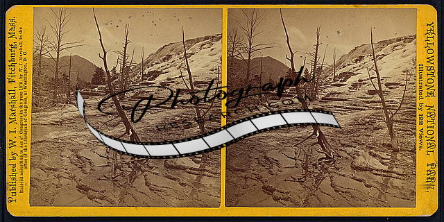 Photo of Stereograph,Yellowstone National Park,Mammoth Hot Springs,Lone Tree 2