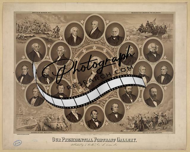 Our Presidential Gallery,1877,Washington,Lincoln,Adams,Jefferson,Pierce,Hayes