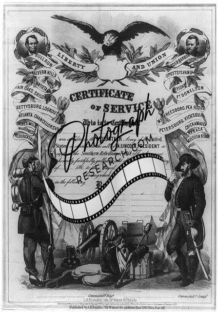Photo of Certificate of Service in Northern Army during Civil War,c1886,Military