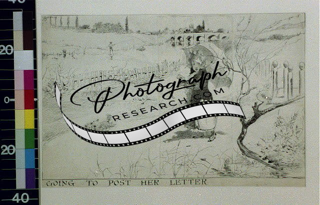 Going to post her letter,Alfred Brennan,Walking,Postal Service,1891?,Umbrella