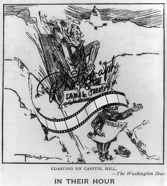 Coasting on Capitol Hill,1903,Political Cartoon,US Senate,Canal Treaty,Morgan