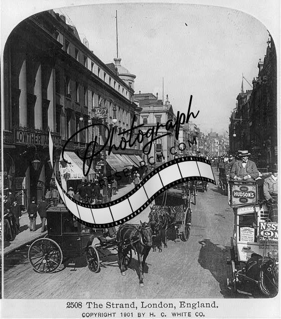 The Strand,London,England,c1901,horse-drawn cabs,Hudson's,Lowther Arcade