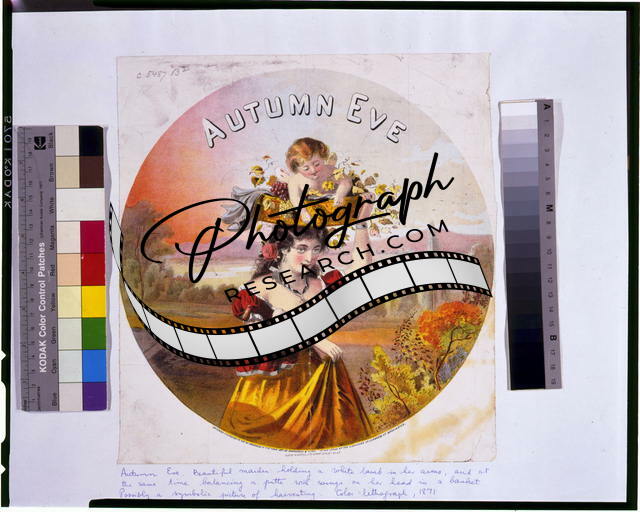 Photo of Tobacco Label,Autumn Eve,c1871,woman holding lamb,cherub,basket