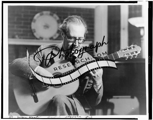 Andrés Segovia,playing guitar,with pipe in his mouth,c1947,Classical Guitarist,2