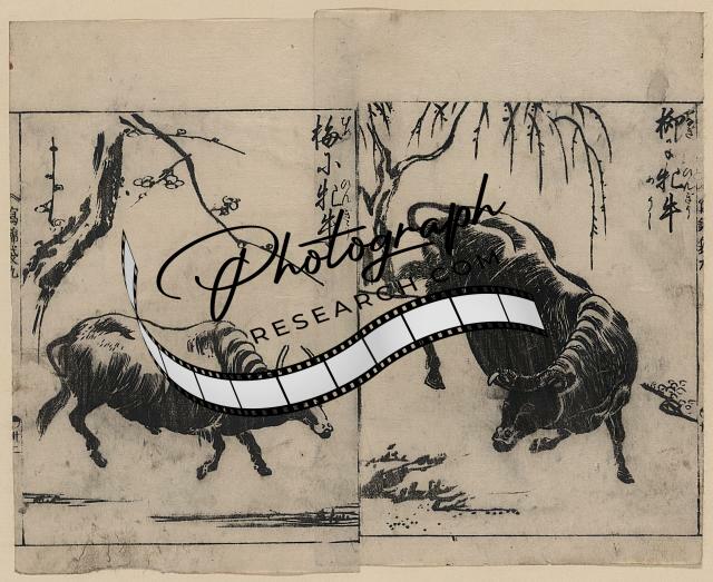 Photo of Ukiyo-e,Morikuni Tachibana,Japan,Plum Trees,Oxen,Willows,1720