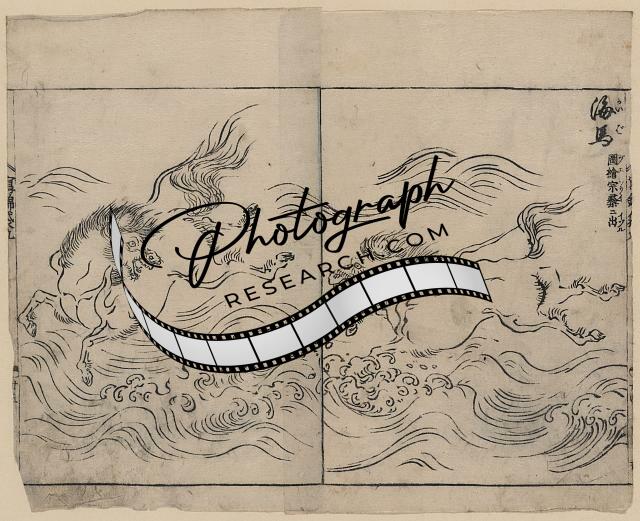 Photo of Ukiyo-e,Morikuni Tachibana,Japan,Wild Horses Running in Water,Surf,1720