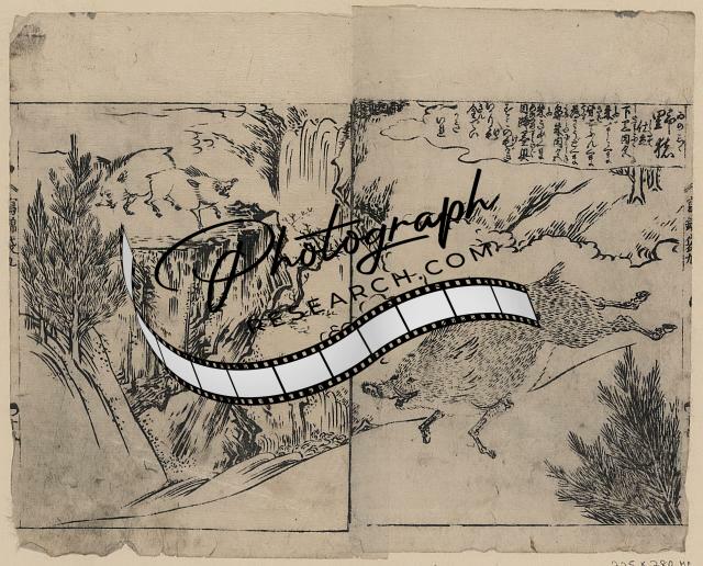 Photo of Ukiyo-e,Morikuni Tachibana,Japan,Wild Boars Running,Pine Trees,1720