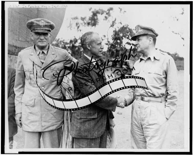 Secretary of War Robert Patterson,General Douglas MacArthur,William Knudsen,1945