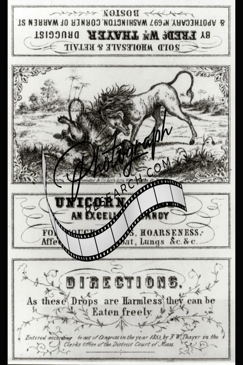 Advertisement,Unicorn Drops,Patent Medicine,c1853,For Coughs,Colds,Hoarseness